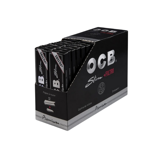 OCB Premium Slim Kingsize Schwarz + Tips, 32 Hefte je 32 Stück